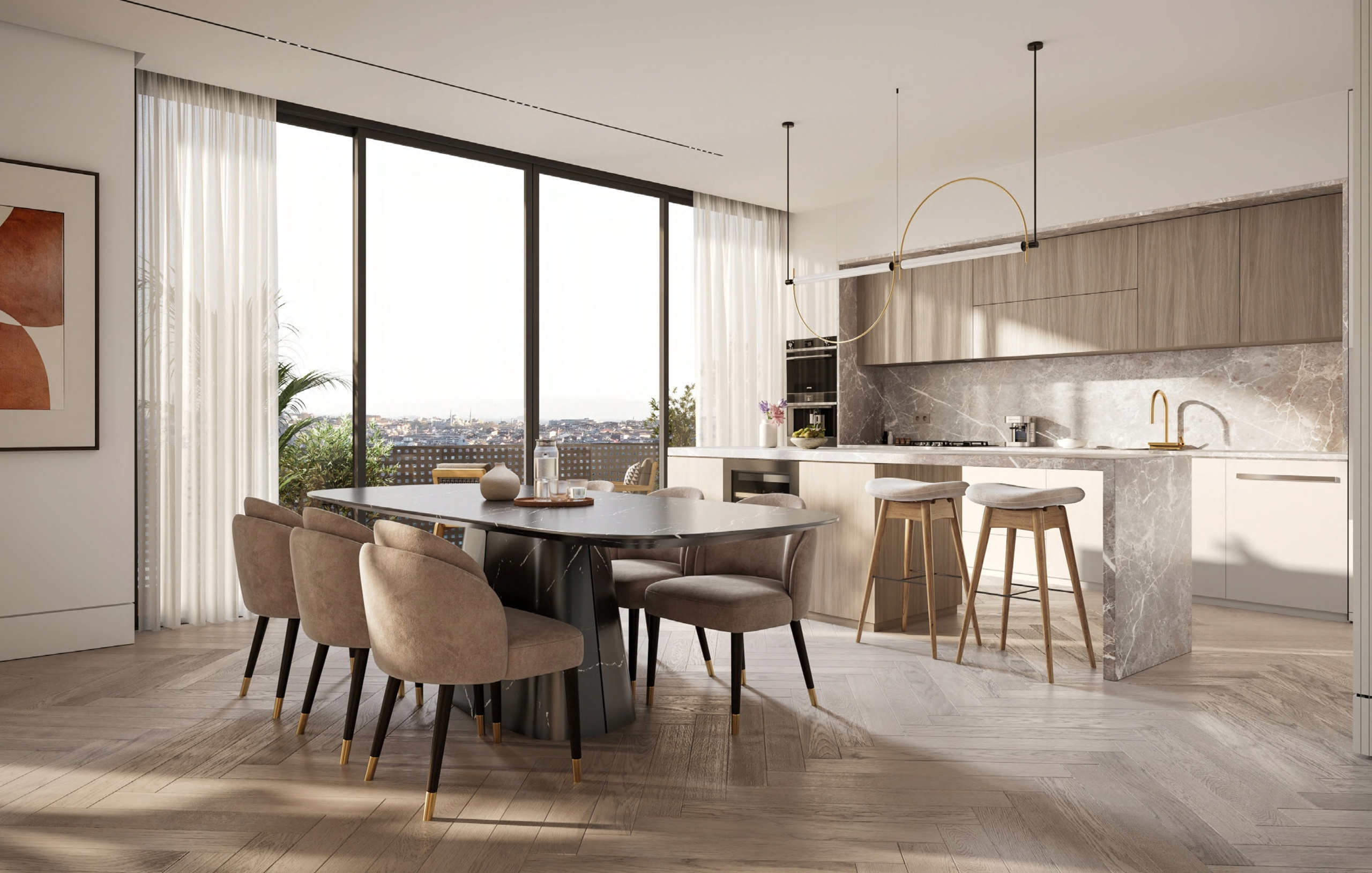 Meticulously crafted to harmonize with Istanbul’s iconic skyline, these luxury apartments feature elegant interiors finished to the highest international standards. Floor-to-ceiling windows frame breathtaking, panoramic views of the Bosphorus, the Golden Horn, and the Historical Peninsula—offering residents a living canvas that evolves throughout the day.