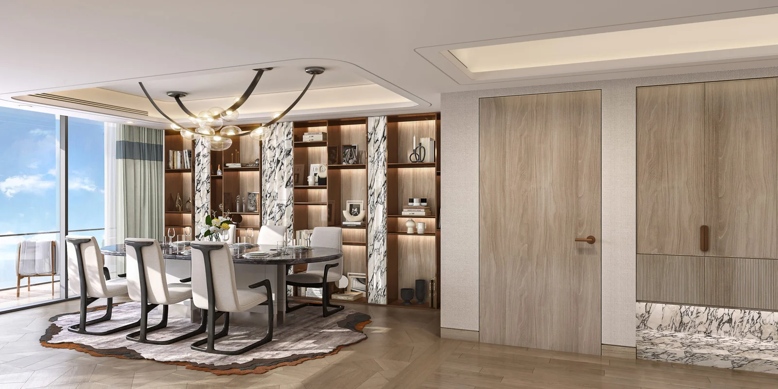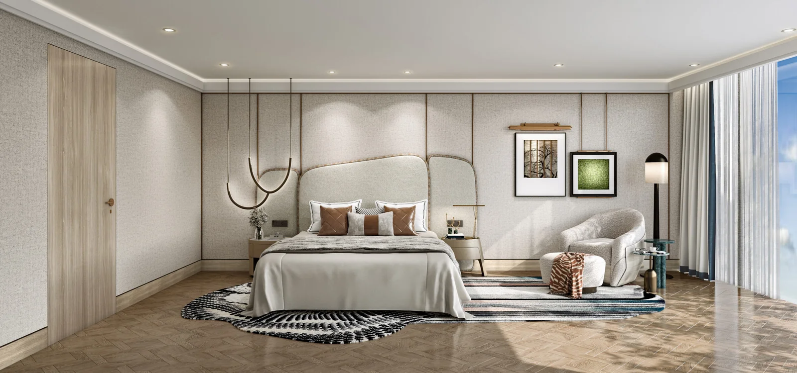 - High‑end interior finishes: engineered wood/stone floors, designer kitchens, premium sanitaryware